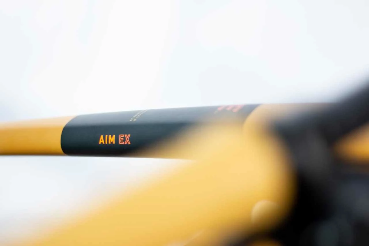 Le cadre Aim se distingue par son aspect très épuré. Il s’agit d’une connexion entre le tube de direction et le profil de la tige de selle, réalisée par un processus de soudage lisse. Nous avons également opté pour un boîtier de pédalier vissé et nous avons placé les câbles à l’intérieur pour qu’ils fonctionnent plus longtemps et soient plus faciles à réparer. Il y a également un support de frein à disque Flat Mount qui s’intègre parfaitement dans le support de béquille latérale. Il comprend également des points de fixation pour les garde-boue ACID et le porte-bagages. La géométrie révisée abaisse le tube supérieur pour une maniabilité plus sûre et laisse beaucoup de place pour des pneus larges de 2,25 pouces qui adhèrent bien et roulent confortablement. Le système SizeSplit a également été développé. Tu trouveras ainsi à coup sûr la combinaison parfaite entre l’Aim Wheel et la taille du cadre.