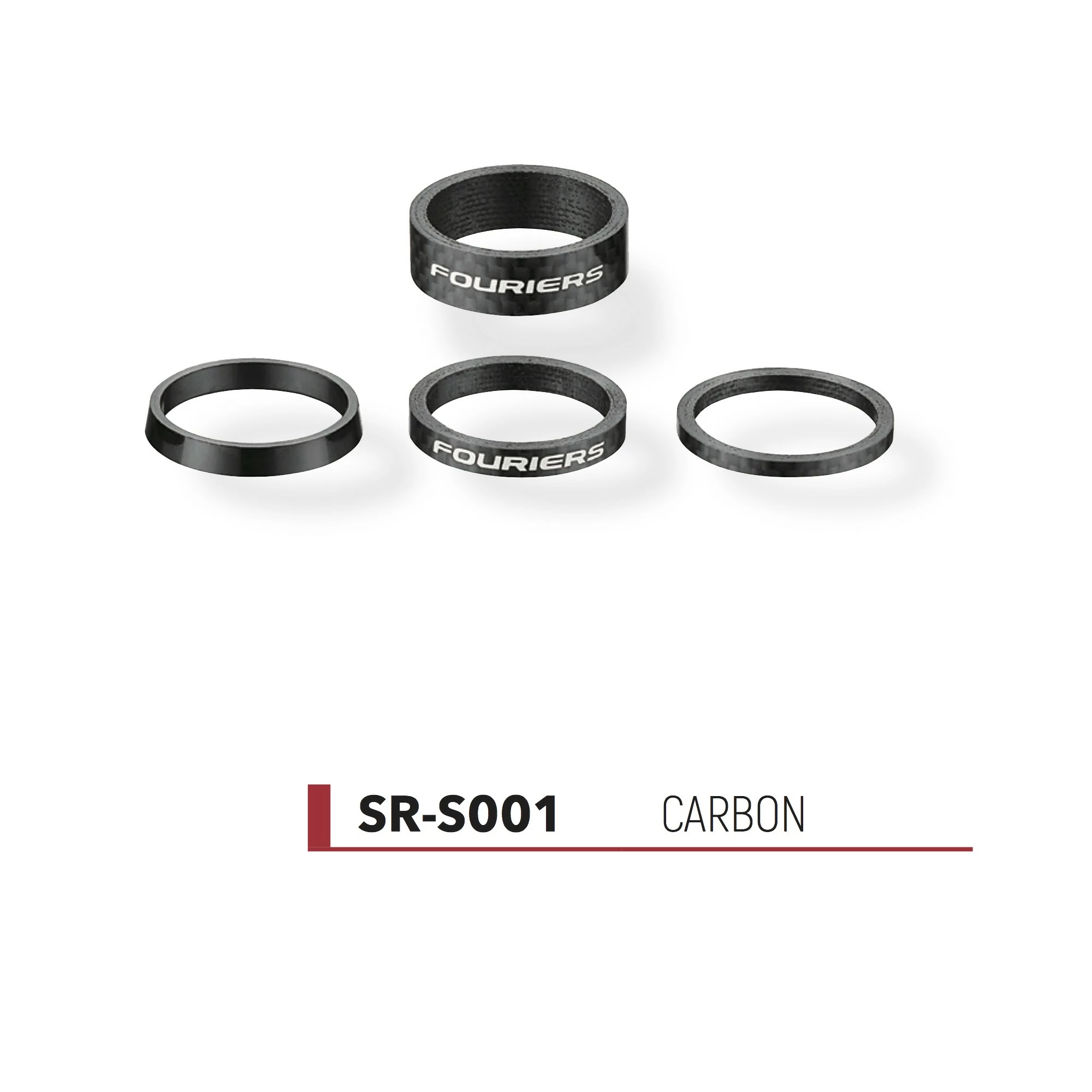 Jeu de 3 entretoises carbone : 3, 5, 10mm et une conique en aluminium.